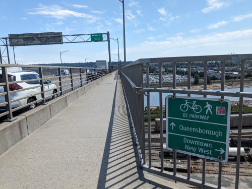 Though the suburban scenery and parks are pleasant, be aware that 12th Avenue can be a rat-runner route for cars. They’ll love you for hitting the crossing button at 2nd Street to go back down into New West (whee! hill!) but also cut you off.