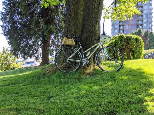 A little further on, cross Columbia Street at the crosswalk to get on the shared use path on the north side of the street. MAMILs can sometimes be seen continuing speedily along Columbia with the cars, but I definitely do not recommend this for the non-Tour de France competitors among us. The path more or less follows Columbia and East Columbia, straying into the Victoria Hill neighbourhood at McBride, where you’ll find some big, shady 100-year-old trees along the zoomy downhill run. (Watch for people and dogs!)
